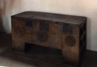 The church chest below the pulpit dates from the late 12th or early 13th century. It was used originally for vessels, vestments and parish records but also for money offerings, as is shown by a slot in the lid and a singular receptacle below. It is probably one of the chests ordered in 1199 to be made and placed in all churches and is one of the best preserved of these still extant.