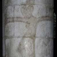 After 500 years unaltered, the north aisle was added in about 1190 and the pillar and two Transitional pointed arches of this enlargement survive today. A faded painted crucifix from the same date can be clearly seen on the pillar and several medieval pilgrim crosses are cut into its lower part. Stonework of the filled 13th century porch, very evident without, is exposed in the south wall of the nave. This was the entrance to the church until 1866 and is almost certainly a modification of the original Saxon doorway. The external holy water stoup is a 15th century addition. Below the pulpit and also dating from the 15th century is a piscina (a shallow basin placed near the altar used for washing the communion vessels), its drain concealed by a stone rose, and this serves as an interesting reminder of the presence of a previous medieval side altar.